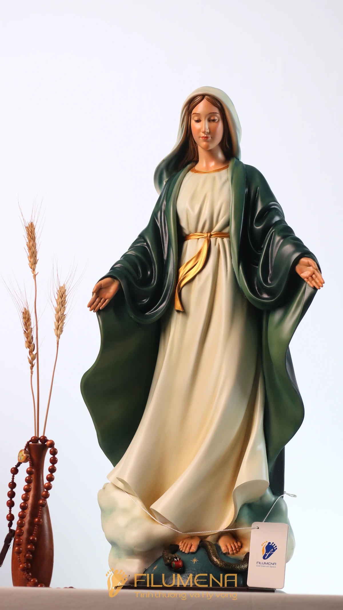Filumena là tượng Công Giáo của Tình thương & Hy vọng. 10% giá trị mỗi tác phẩm và ít nhất 25% lợi nhuận là đóng góp cho các việc Bảo vệ Sự sống, giúp đỡ người nghèo, người bệnh và nâng đỡ trẻ em khó khăn.