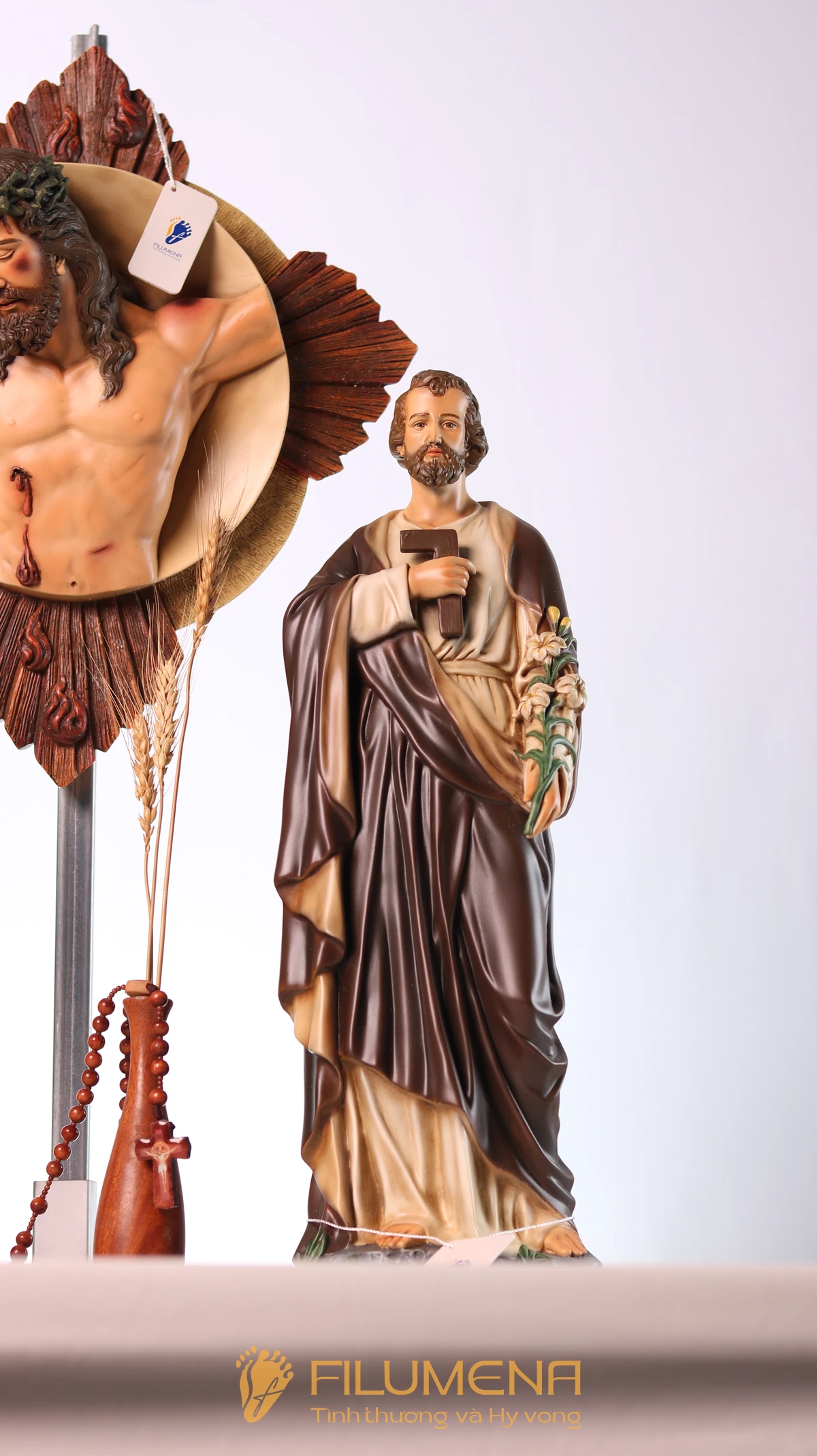 Khuôn mặt Thánh Giuse có nét trầm lắng, hiền hậu, gợi hình ảnh người cha âm thầm làm việc, bảo trợ gia đình. Đặt cạnh Đức Mẹ và dưới phù điêu Chúa, tượng giúp bàn thờ mang trọn hình ảnh Thánh Gia quanh mầu nhiệm Thập giá.