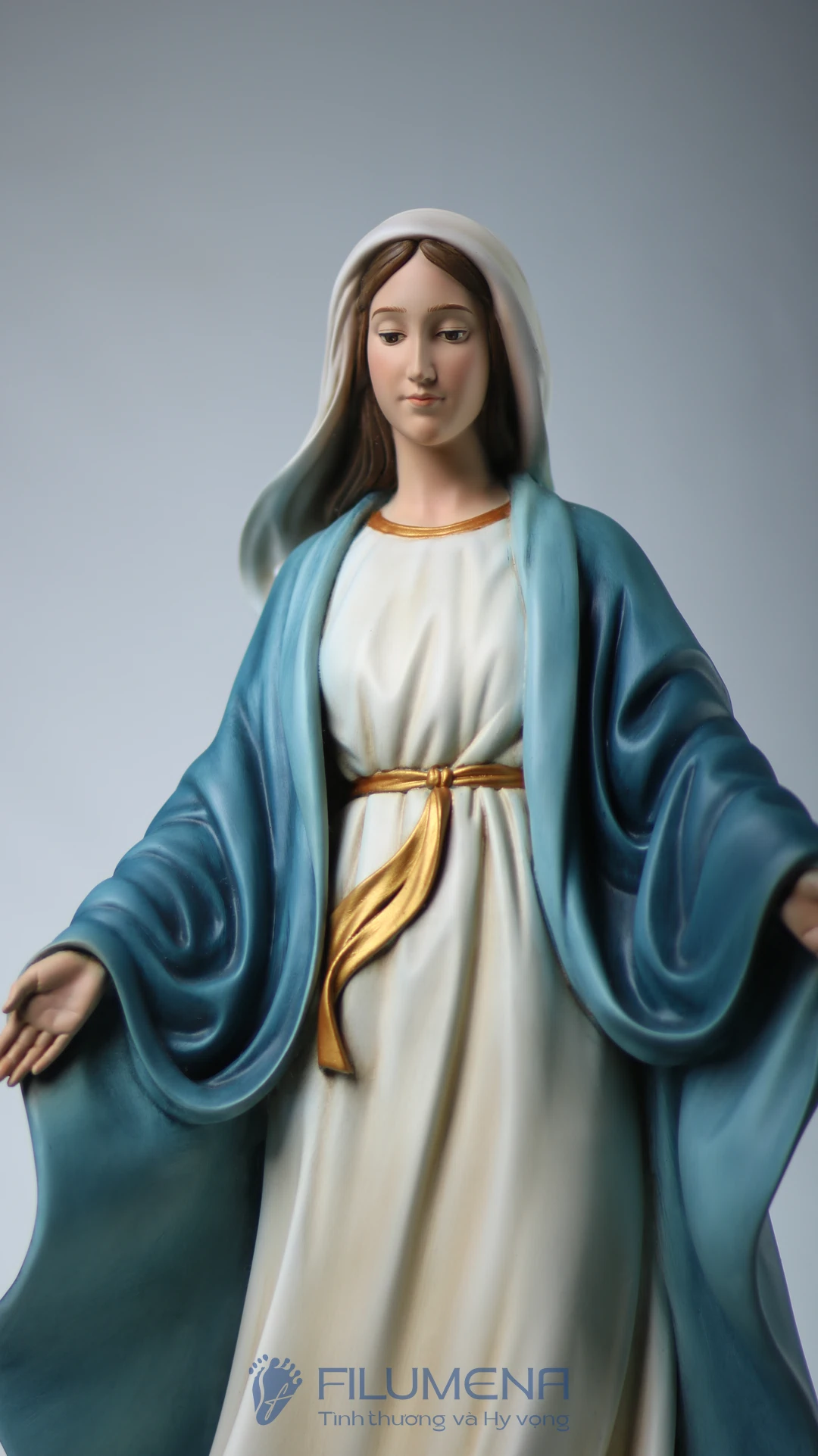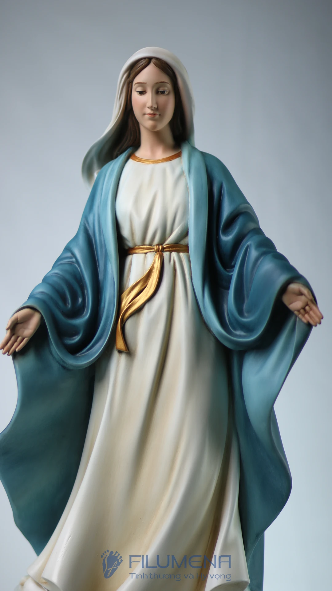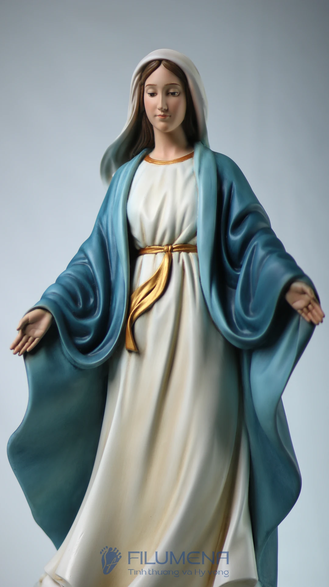 Tượng Đức Mẹ Ban Ơn. Mẫu tượng Đức Mẹ cao 50 cm, 60 cm để phù hợp cho bàn thờ Chúa phòng khách. Mẫu tượng được sáng tác bởi các nghệ sỹ điêu khắc tại tượng Công giáo Filumena.