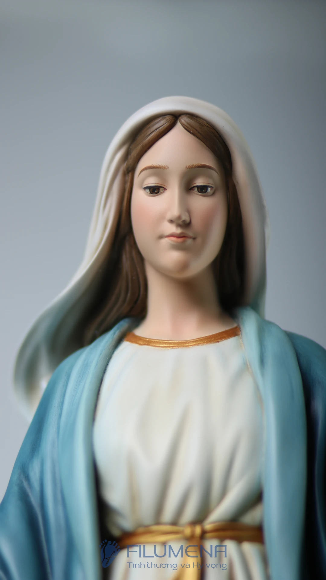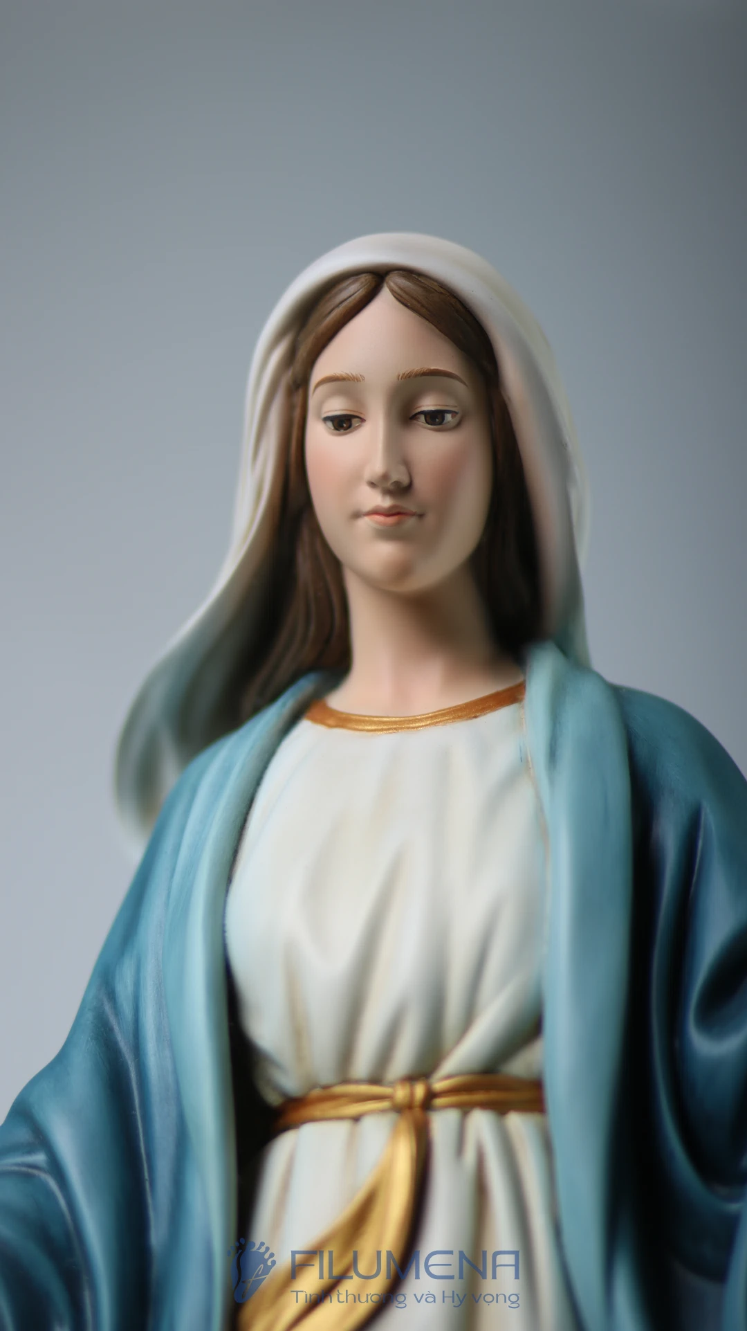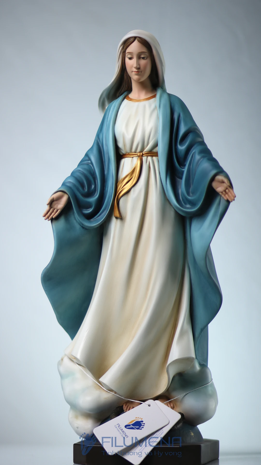 Tượng Đức Mẹ Ban Ơn. Mẫu tượng Đức Mẹ cao 50 cm, 60 cm để phù hợp cho bàn thờ Chúa phòng khách. Mẫu tượng được sáng tác bởi các nghệ sỹ điêu khắc tại tượng Công giáo Filumena.