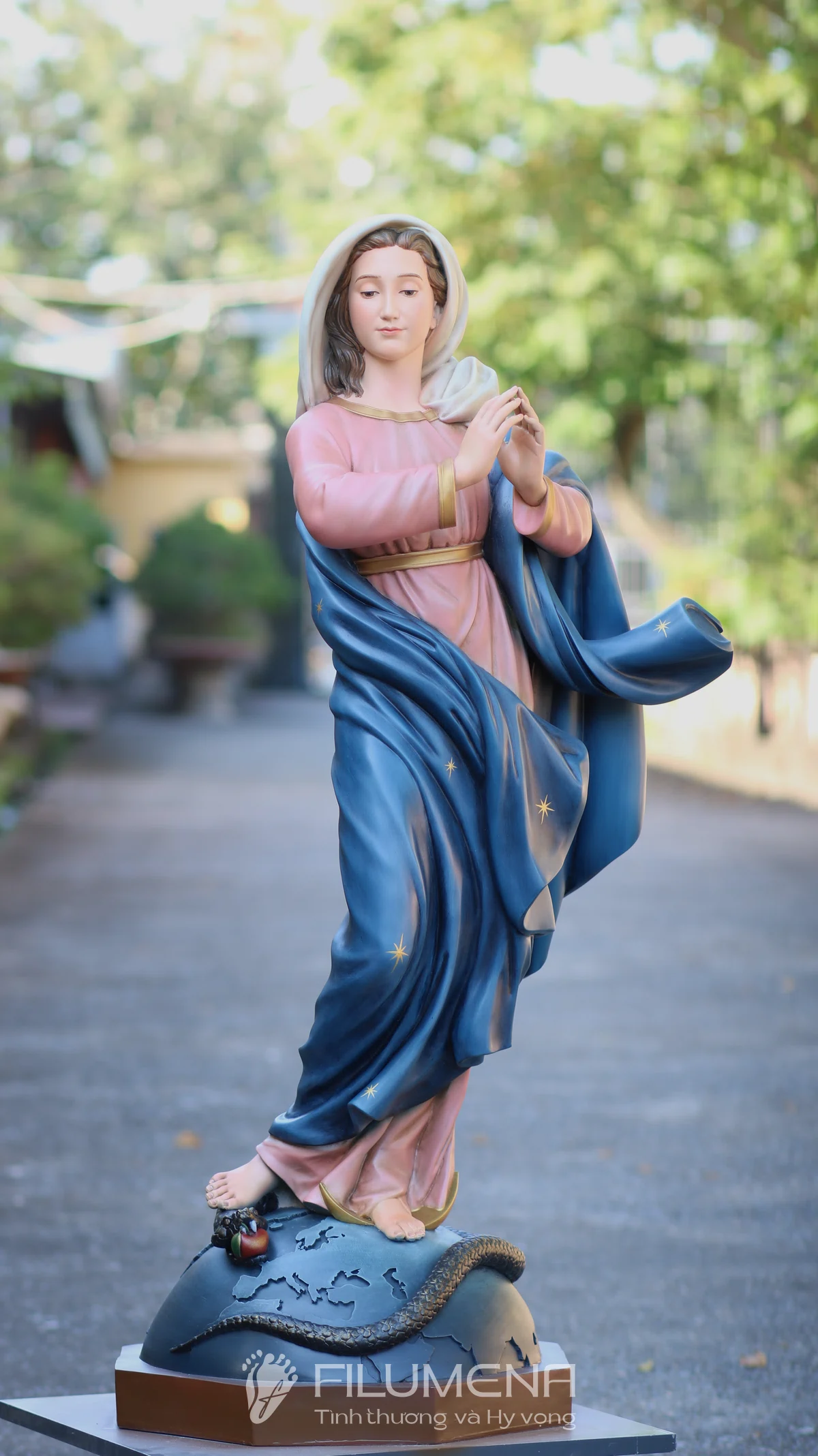 Dành cho những ai đang tìm kiếm một tượng Đức Mẹ có chiều cao trang nghiêm, thần thái sâu lắng và phù hợp làm tượng đức Mẹ Vô Nhiễm Nguyên Tội tại giáo xứ hay gia đình, đây là lựa chọn xứng đáng để trở thành điểm quy tụ lời kinh Mân Côi và mọi lời nguyện dâng Mẹ.