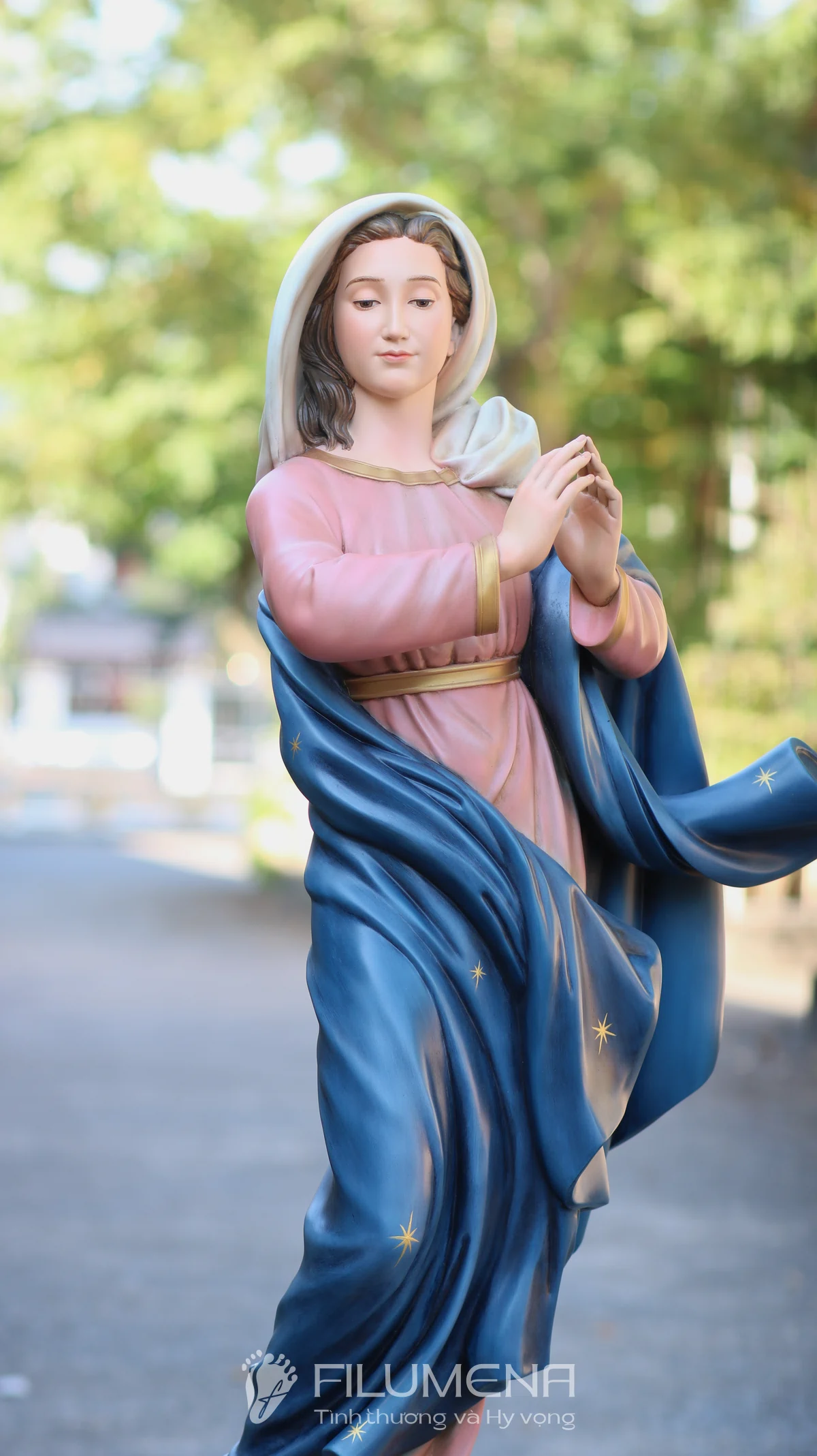 Tượng Đức Mẹ Vô Nhiễm Nguyên Tội cao 1,2 m là mẫu tượng lý tưởng cho các tượng đài Đức Mẹ trong nhà thờ, nhà nguyện, đài Đức Mẹ ngoài sân nhà xứ hoặc khuôn viên gia đình. Dáng đứng thanh thoát, hai tay mở nhẹ, gương mặt hiền từ và đôi mắt dịu dàng hướng xuống, gợi lên hình ảnh Đức Mẹ Vô Nhiễm đang che chở và đón nhận từng người con.