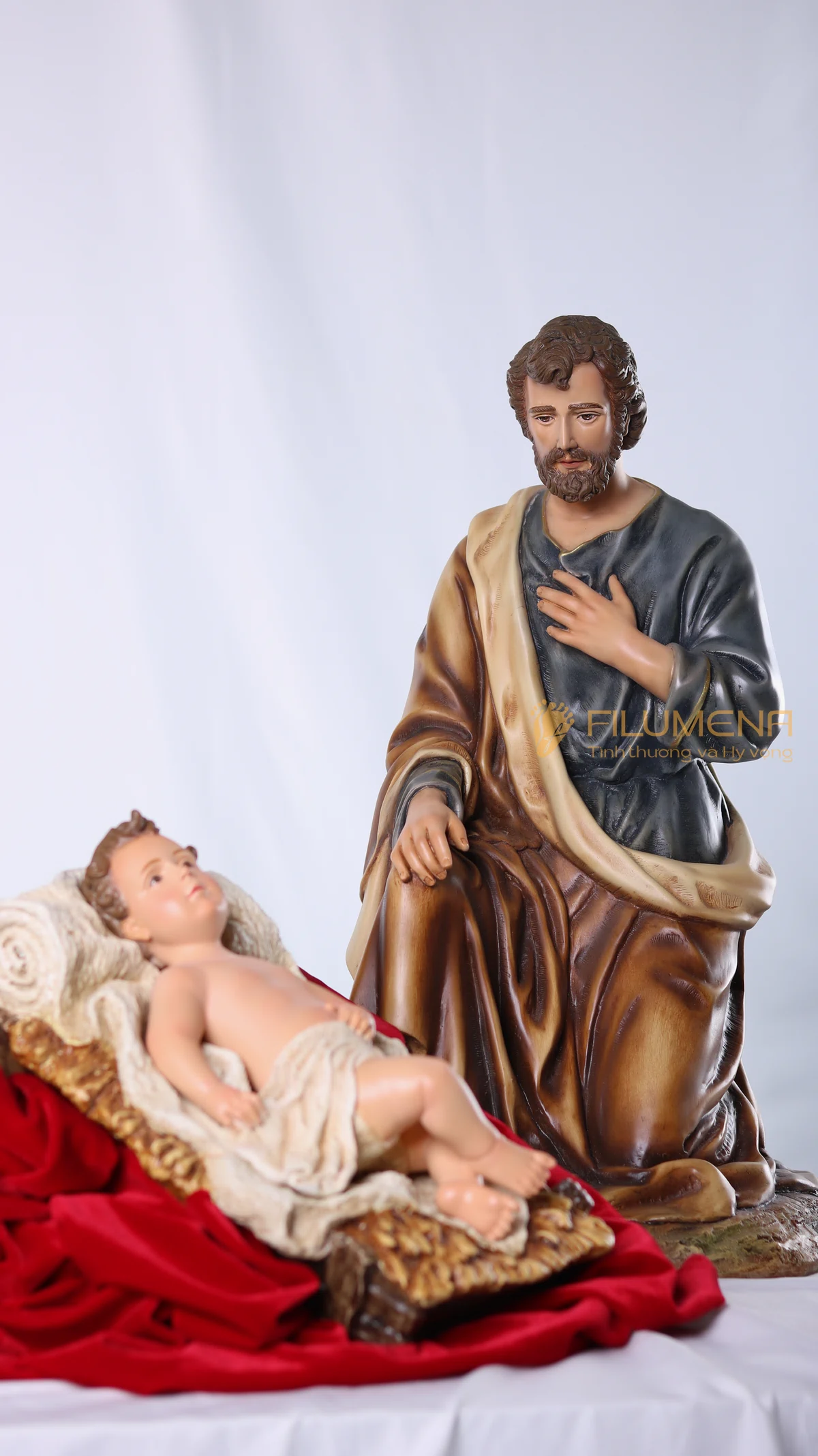 Tượng được sáng tác bởi nghệ sĩ Giuse Nguyễn Cao Trí, dựa trên tỉ lệ chuẩn của dòng tượng Giáng sinh 20 – 50 cm của Filumena.