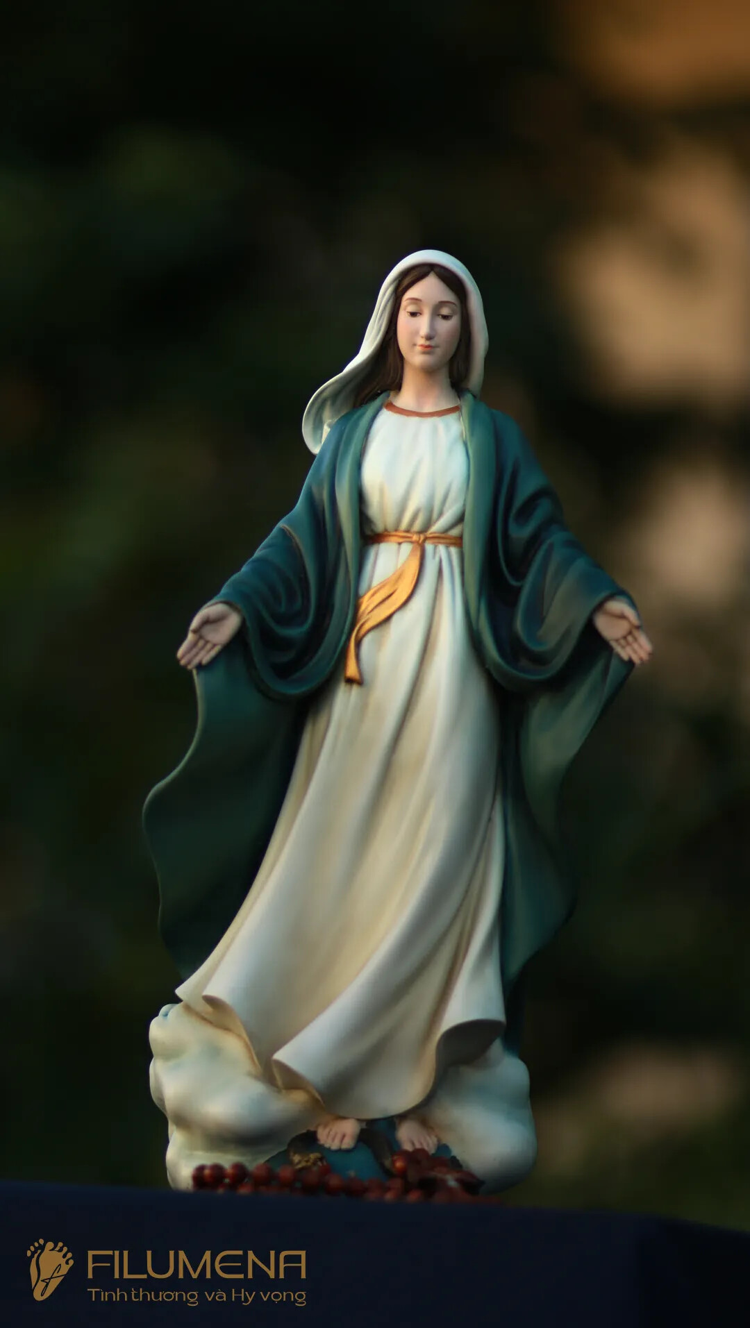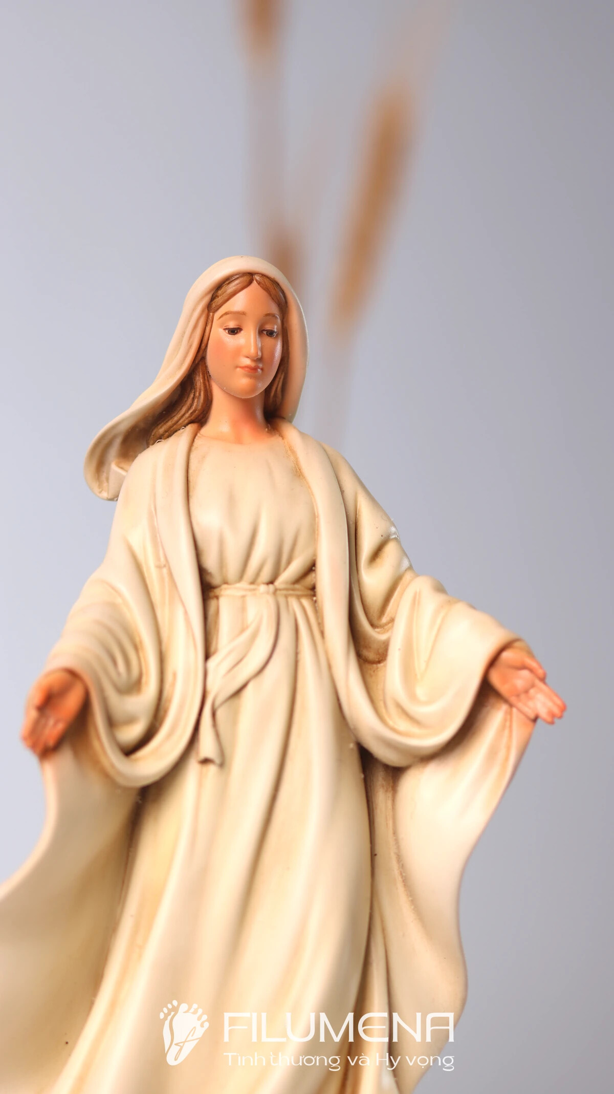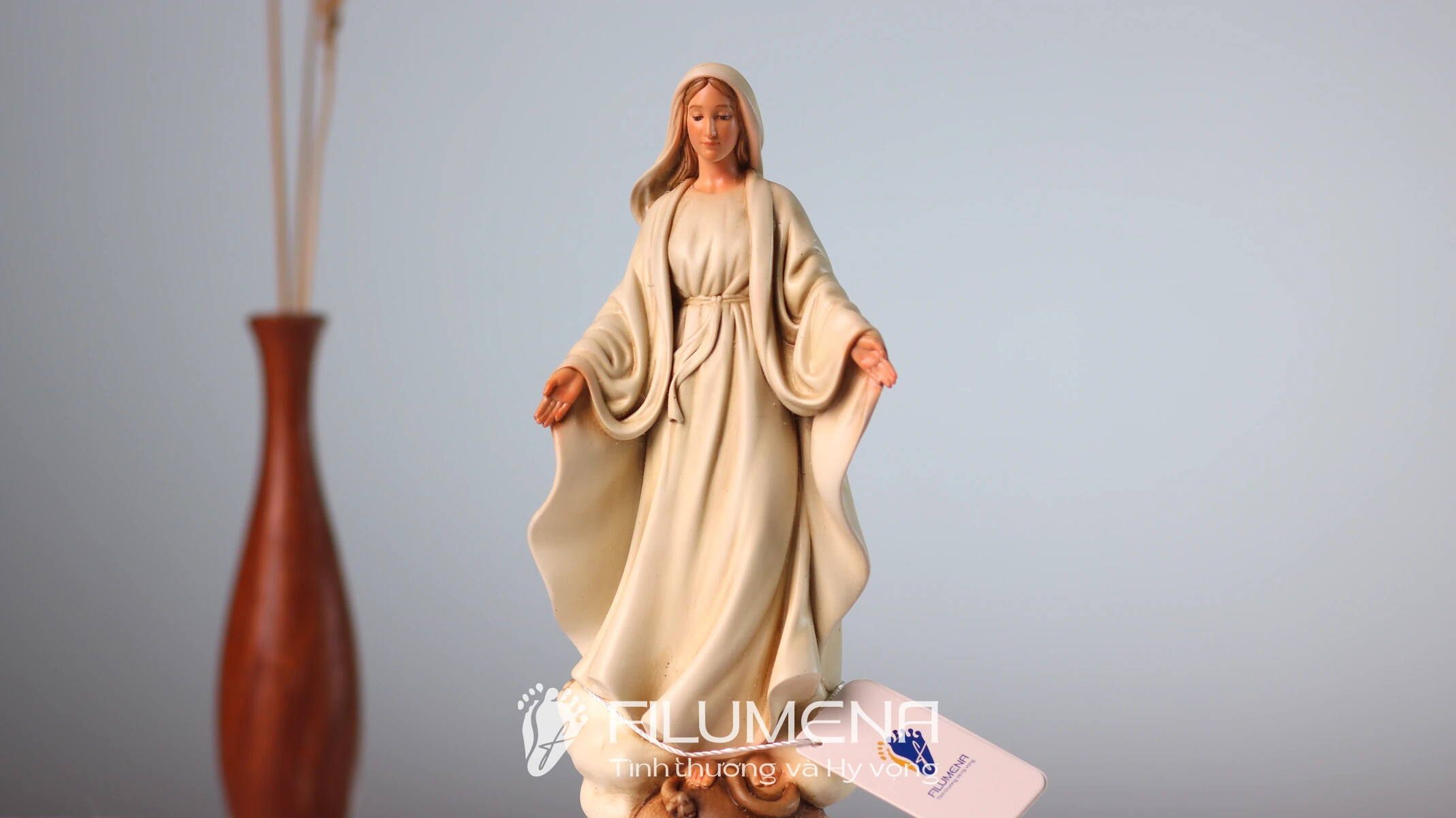 Filumena là tượng Công Giáo của Tình thương & Hy vọng. 10% giá trị mỗi tác phẩm và ít nhất 25% lợi nhuận là đóng góp cho các việc Bảo vệ Sự sống, giúp đỡ người nghèo, người bệnh và nâng đỡ trẻ em khó khăn.