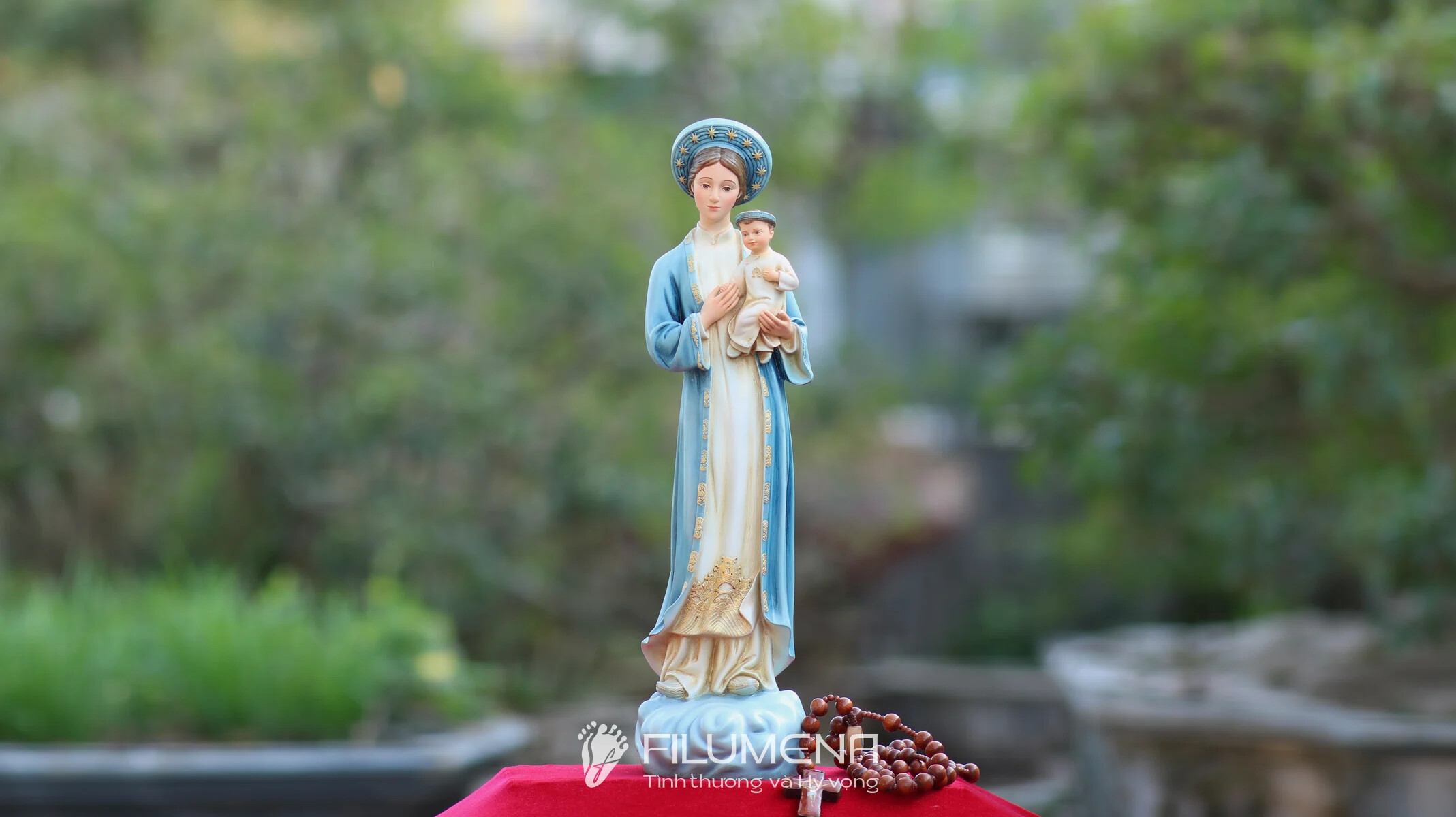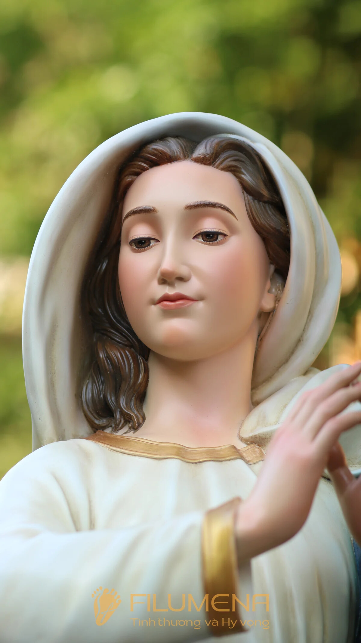 Filumena là tượng Công Giáo của Tình thương & Hy vọng. 10% giá trị mỗi tác phẩm và ít nhất 25% lợi nhuận là đóng góp cho các việc Bảo vệ Sự sống, giúp đỡ người nghèo, người bệnh và nâng đỡ trẻ em khó khăn.
