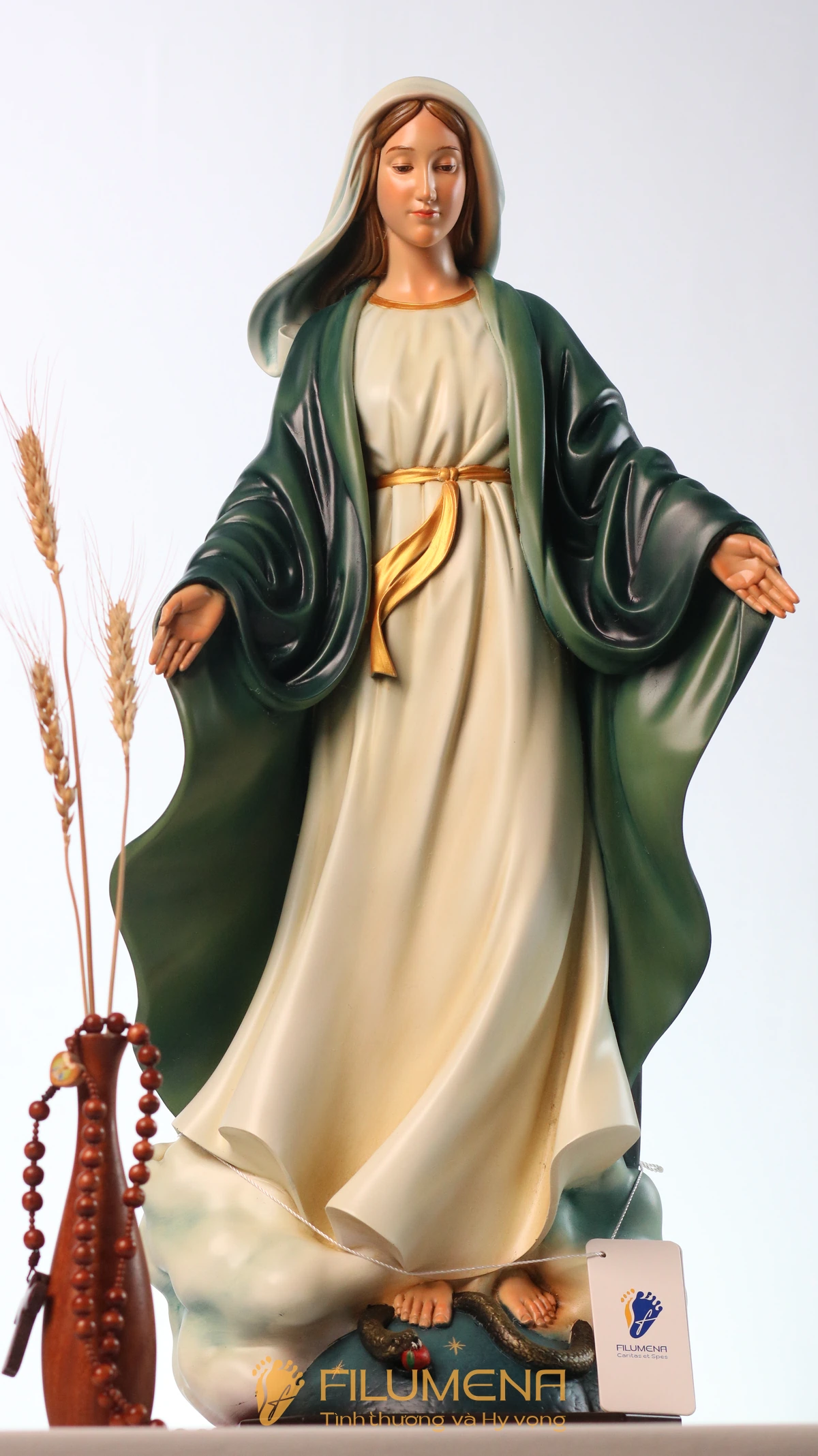 Filumena là tượng Công Giáo của Tình thương & Hy vọng. 10% giá trị mỗi tác phẩm và ít nhất 25% lợi nhuận là đóng góp cho các việc Bảo vệ Sự sống, giúp đỡ người nghèo, người bệnh và nâng đỡ trẻ em khó khăn.